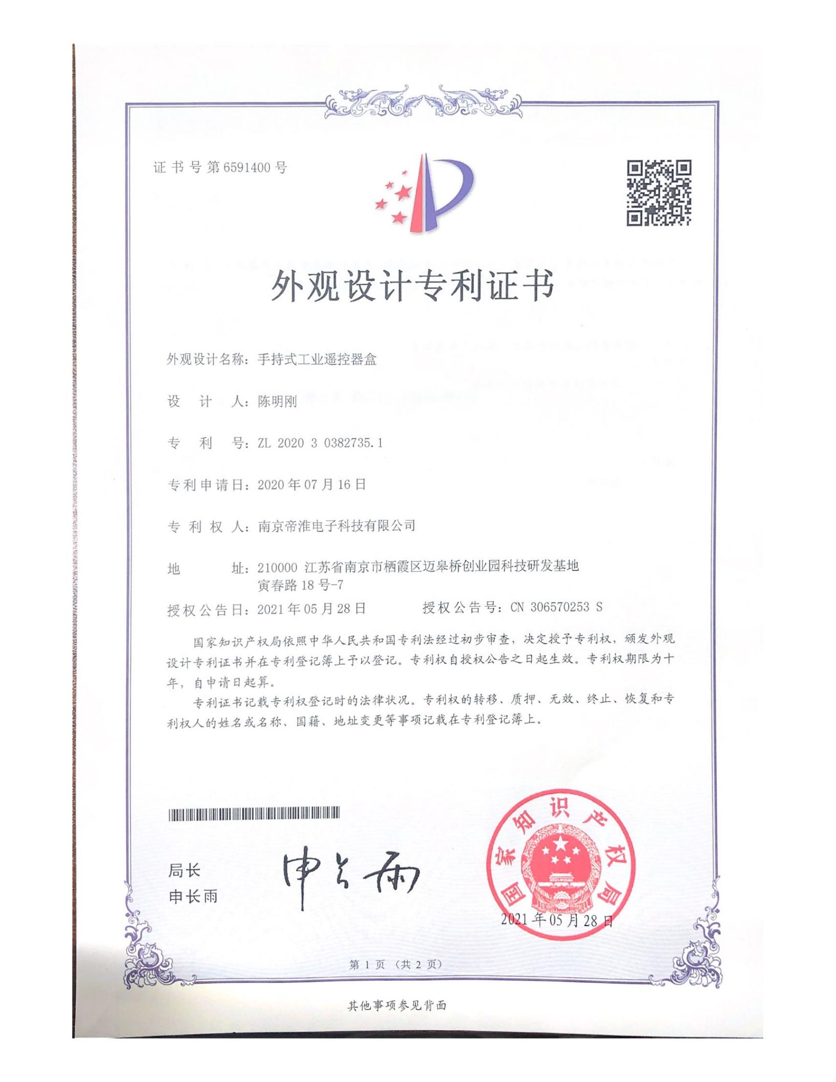 南京帝淮电子科技有限公司,国内工业??仄餍幸盗炀笠?,自主研发、定制、非标设计各类工业级无线??仄鳌⒐ひ导队邢呖刂破?、智能化自主算法逻辑的本地控制器等系列产品。已经申请及正在申请的技术专利、外观专利有近三十项左右,并通过了CE欧盟认证、国家级试验检验报告、EMC电磁兼容认证等。